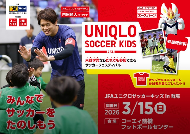 JFAユニクロサッカーキッズ in 群馬 3月15日(日)開催 1月14日(水)から参加者募集開始