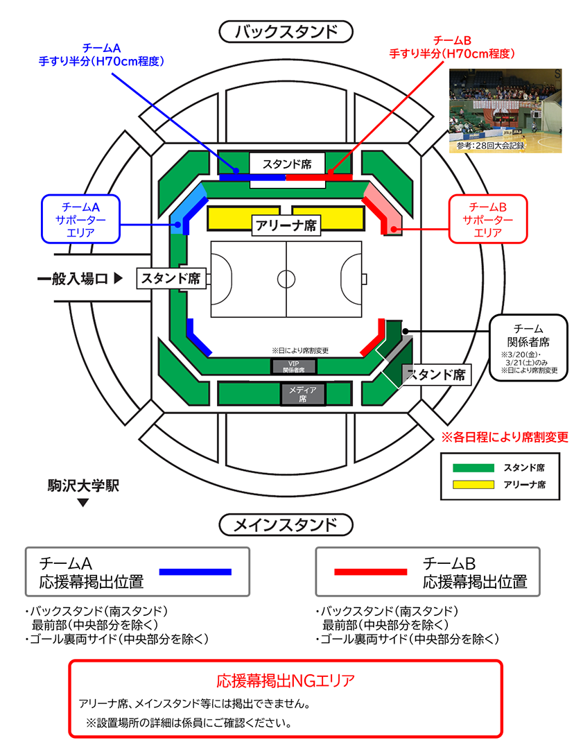 - ※ 太鼓などの鳴り物や大旗の持込み・使用は指定されたエリア(サポーター席)のみとなります。