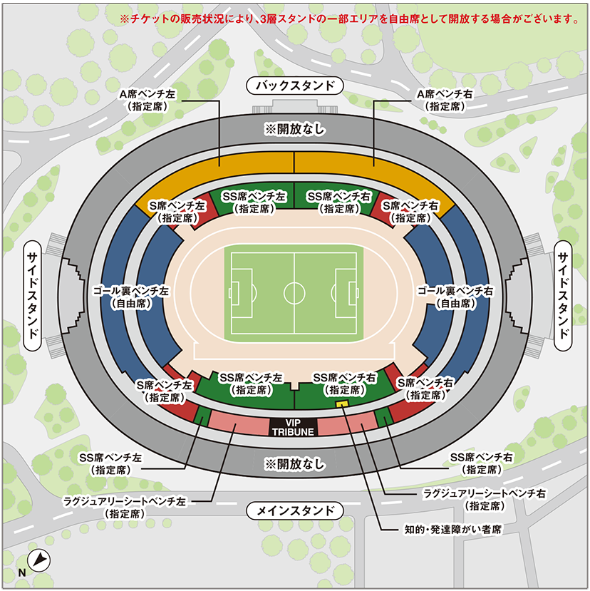 ※会場によっては指定席がエリア内自由席となる場合や、ゴール裏指定席となる場合がございます。また、企画席等がある場合もございますので、詳細はJFAのホームページ等でご確認ください。