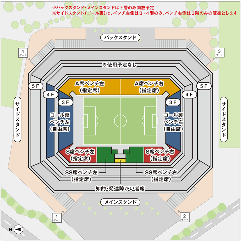 | 車椅子席(ゴール裏自由/一般) | ¥4,500 | ¥4,500 | ¥4,500 | |