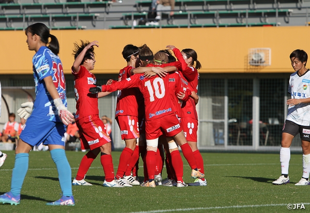 ASハリマアルビオン(なでしこリーグ1部/兵庫)は、立ち上がりから持ち味の走力を生かしてハイプレスを仕掛け、ジェフ千葉レディース(WEリーグ/千葉)を押し込んでいきます。