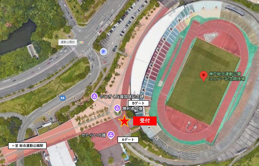神戸総合運動公園ユニバー記念競技場 Aゲート(勝利者の像)付近特設受付テント