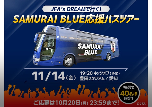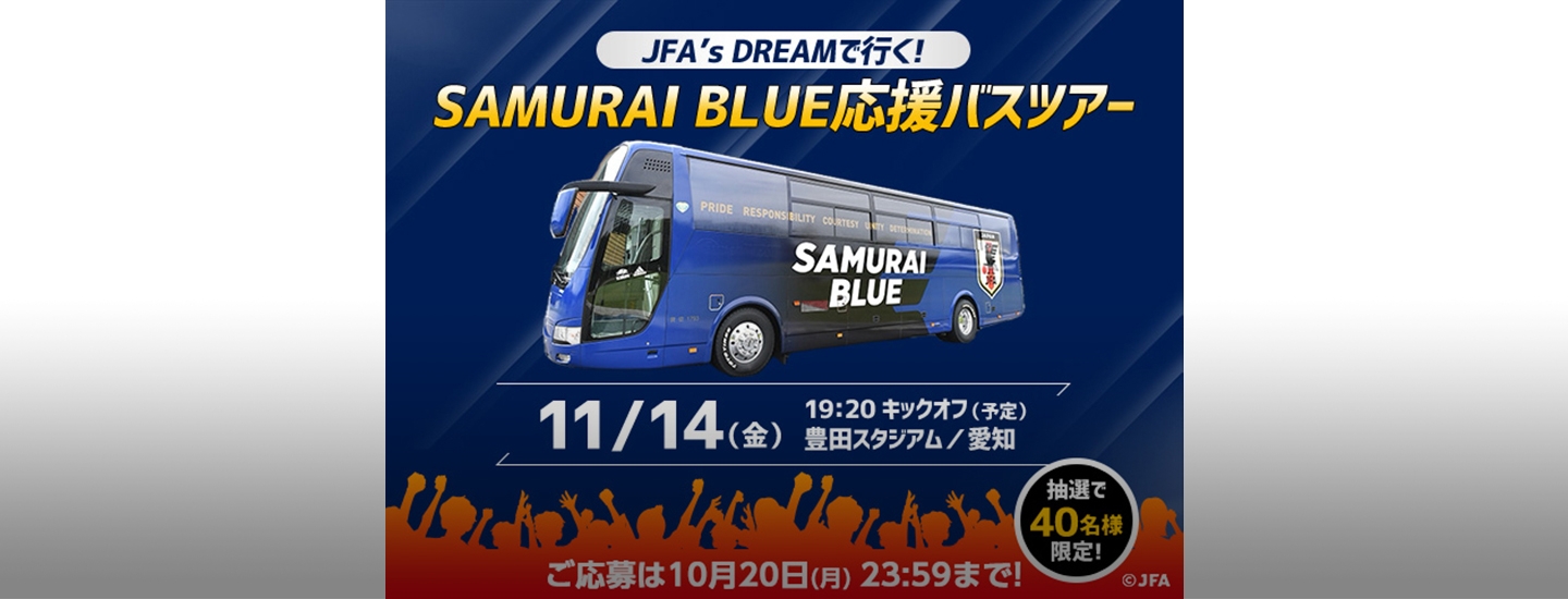 【受付開始のお知らせ】「JFA's DREAMで行く! SAMURAI BLUE応援バスツアー」 11/14(金)開催