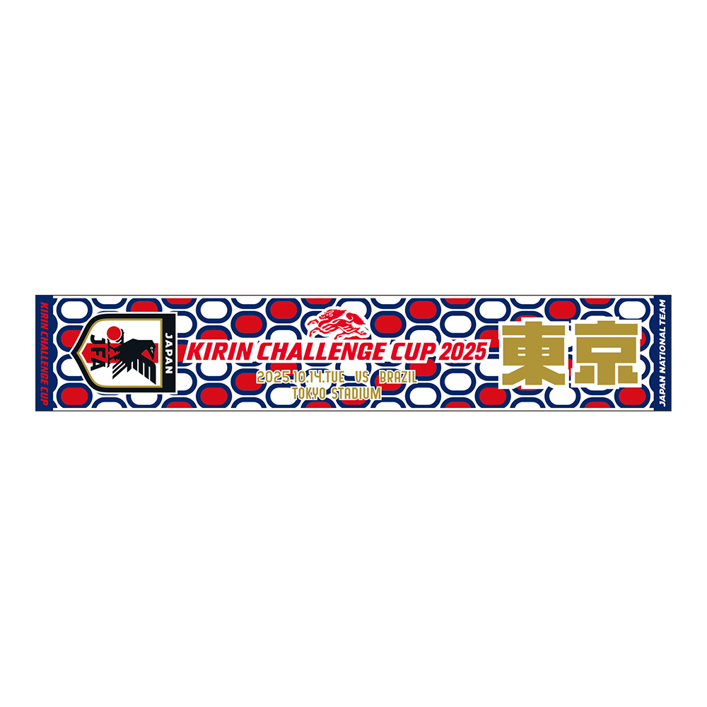 キリンチャレンジカップ2025の対戦相手、試合日、試合開催地が入った限定デザインのマッチデーグッズを販売します。
