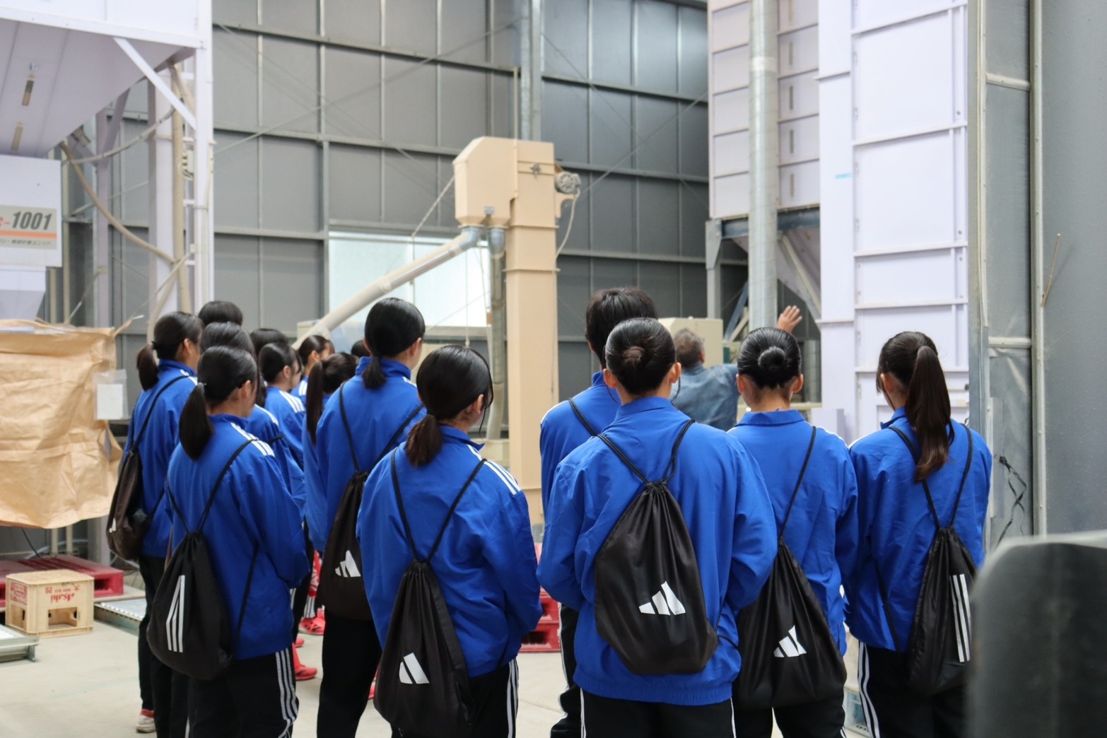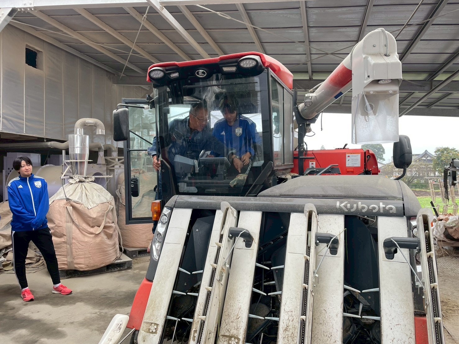 私たちは10月11日にアイデアファームさんで稲刈り学習をさせていただきました。雨だったため、実際に稲刈りをすることはできなかったのですが、稲を刈ってから出荷までの流れなど様々なことを学びました。私はコンバインという、稲を刈る機械を操縦させていただきました。思ったより操縦の方法は単純で、なかなか経験できない貴重な経験になりました。でもこの大きい機会に乗って、実際に田んぼで稲を刈るのは、後ろや手前が見えずらいので、距離感や高さを調整するのが難しそうだなと思いました。また、稲を刈ってから出荷するまでの流れを見て、水分を数パーセント単位で調節する機会や、石などの不純物を取り除く機械があることを初めて知りました。建物内には、大きな機械が約4つもあって、お米が私たちに届くまではこんなにたくさんの工程をつむのだということに驚きました。最後に、この稲刈り学習を通して、農家さんの苦労により美味しいお米ができることを学ことができました。これからは、私たちが毎日食べているお米に感謝して食べていきたいと思いました。