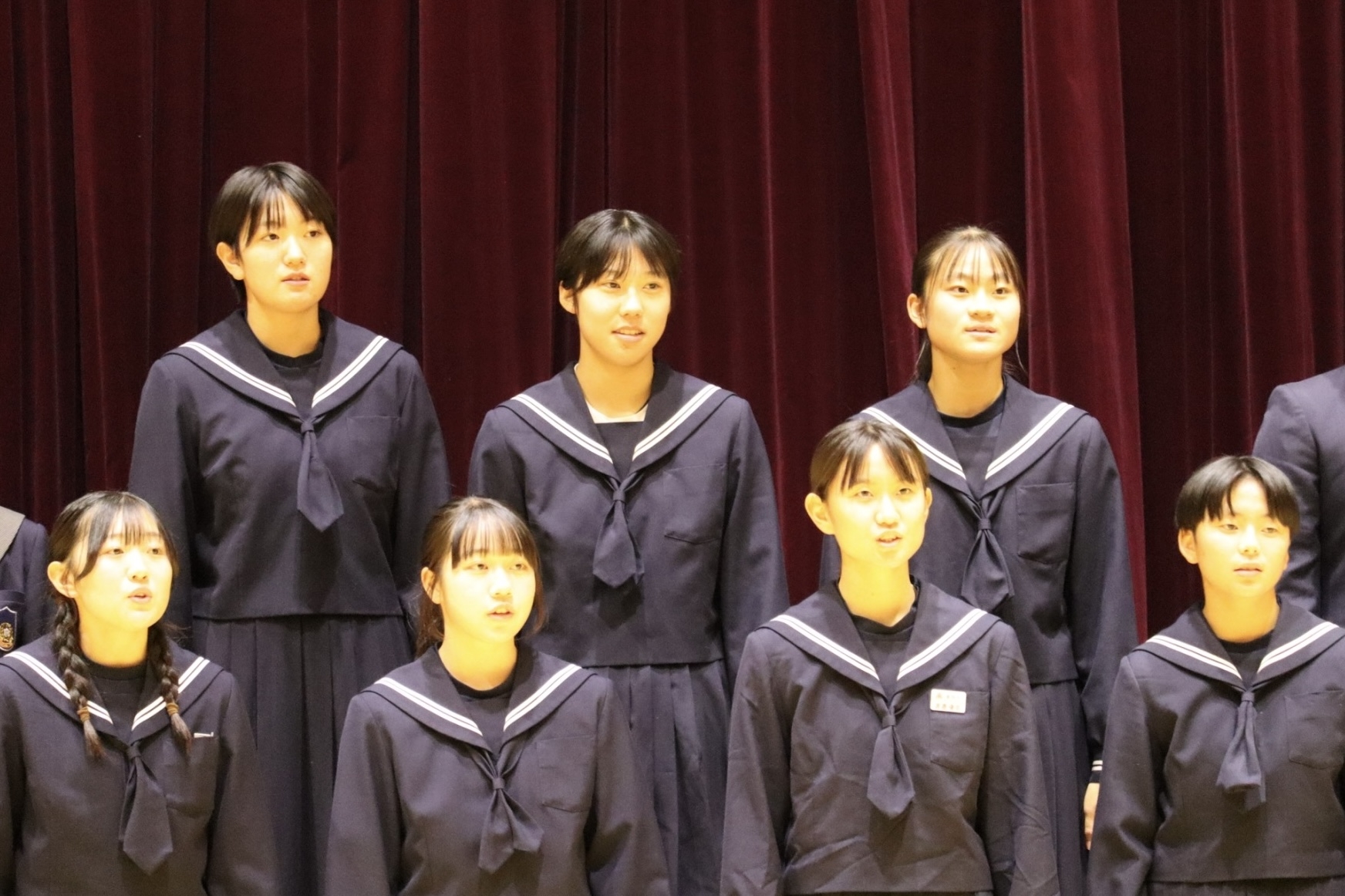私はゆずり葉祭の有志発表でギターの弾き語りをしました。人前に出て何かをすることはあまり得意ではなかったけど、今年でラストのゆずり葉祭なので、思い出作りのために挑戦してみようと思い、ギターを弾くことにしました。発表した曲は「手紙ー拝啓十五の君へ」で、今年中学3年生になったみんなと自分に向けて歌いました。練習時間が少なく、ちゃんと弾けるか心配でしたが、歌い終わった後にたくさんの拍手をもらえたり、泣いてくれる人が人がいたりして、本当にやってよかったなと思いました。