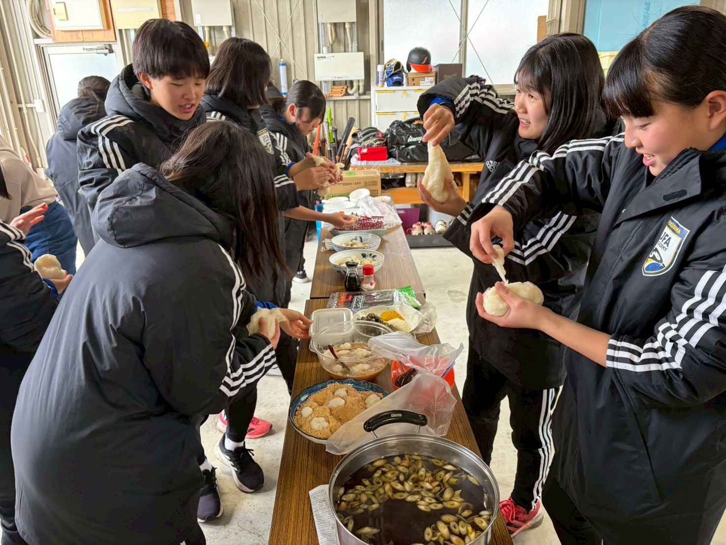 また、その場で、自分たちでついた出来立てのお餅を納豆、お雑煮、みたらし、など自分の好きな味付けで食べました。普段はお餅を買って食べるので、自分たちでついて食べるのは、すごく貴重な経験になりました。これからも、餅つきなどの日本の伝統行事を大切にして、過ごして行きたいです。