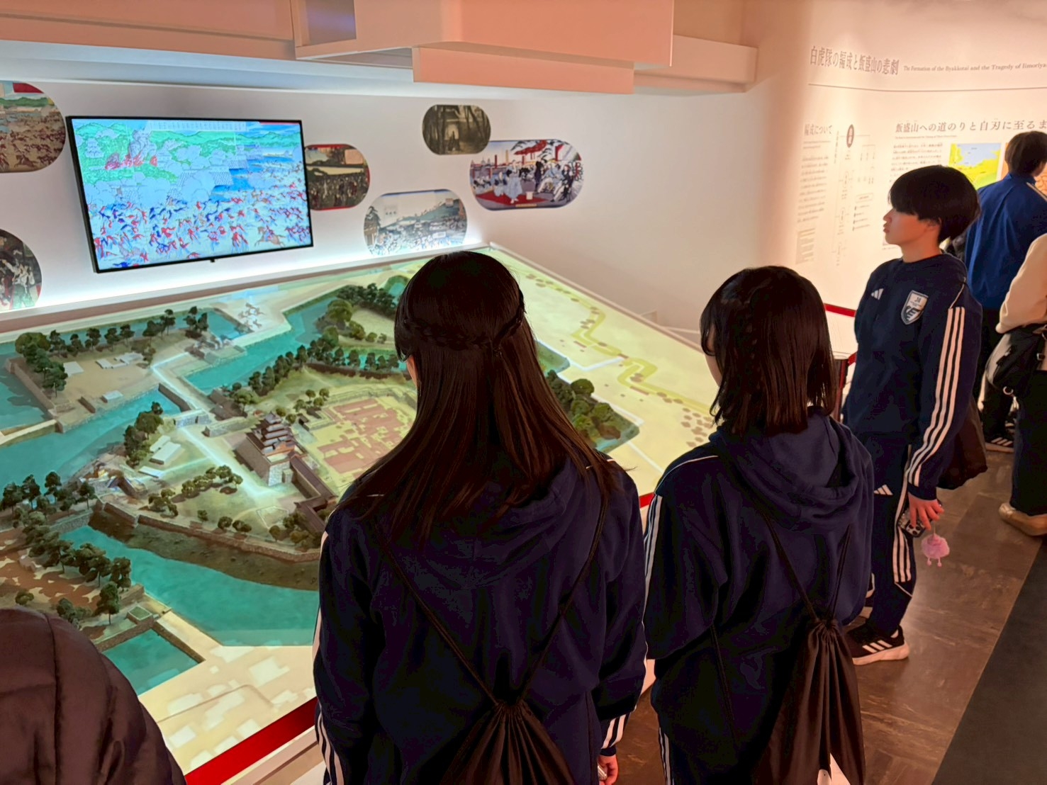 私は3月14日に会津の鶴ヶ城に行きました。そこでは鶴ヶ城を実際に登ったり、見学したりしました。見学では戊辰戦争の時に使っていた寒さや風に強い黒瓦と赤瓦を見ることができました。また、戦いの時に使っていた刀をたくさん見ることもできました。実際に登ってみると、高くて怖かったです。小さい窓や望遠鏡が東西南北とさまざまな方向にあったので、当時は敵がいつ来てもいいように上から見張っていたのだと思いました。鶴ヶ城の周りには、石垣が数えきれないほどあったので、どんな時も戦いに備えて石垣で自分の身を守っていたということもわかりました。飯盛山というところで白虎隊についても詳しく学びました。そこでは、大砲の機械を自分の目で見ることができました。3から5台くらいあってとてもかっこよくてすごかったです。また、起き上がり小法師の絵付け体験もしました。これには、どんな壁にぶつかっても倒れずに立ち上がるという意味があることがわかりました。私は、サッカーでどんな壁にぶつかっても立ち上がることができるという思いでていねいに作ることができてよかったです。そして、起き上がり小法師だけでなく、鶴ヶ城で戦った会津藩の跡が残っており、これは陶磁器や会津漆器などで受け継がれていることがわかり、会津の伝統だと学こともできました。