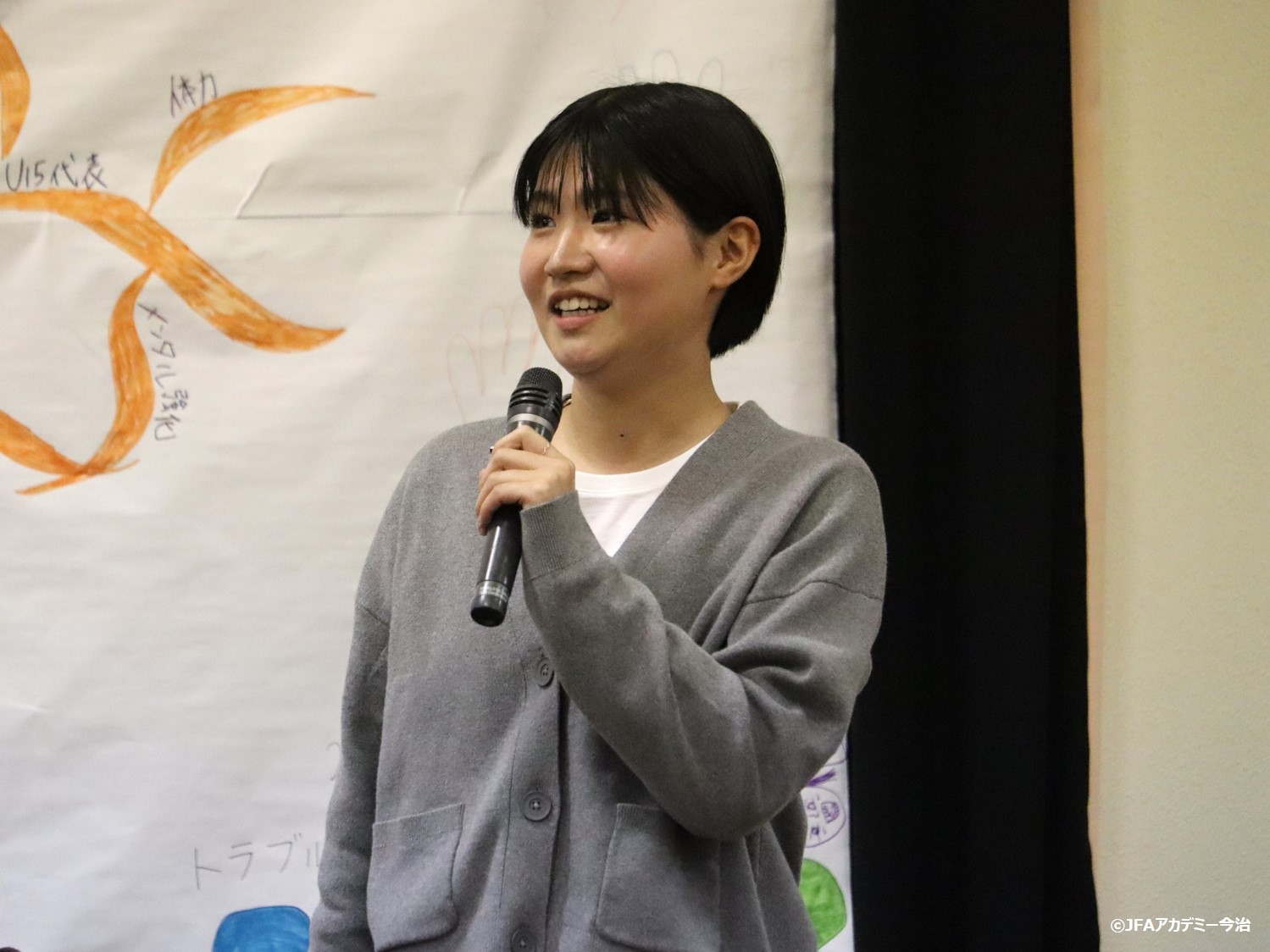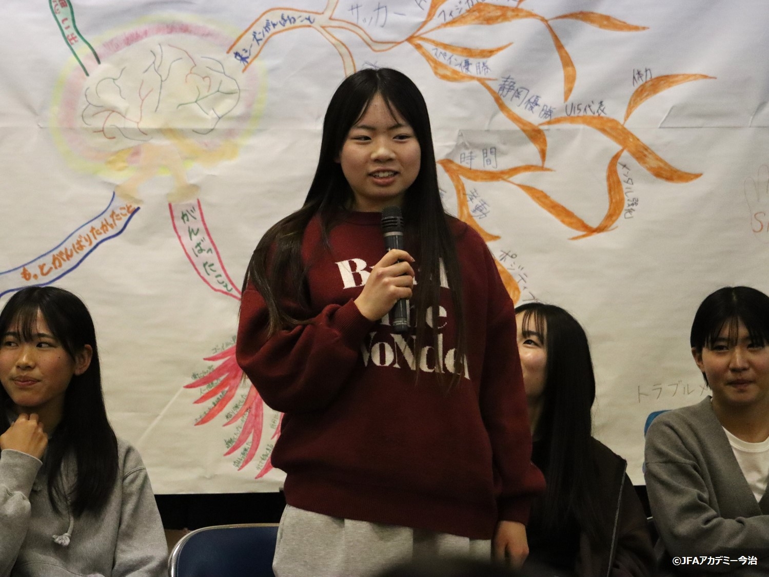 私は2回目のHomeComingDayで、6期生に初めて会い、思ったことが2つあります。1つ目は、勉強の大切さです。勉強は中学校で学んだことの応用が出てくるそうなので、日頃からコツコツ勉強をしないとついていけないことが分かりました。また、テストの点数が低いと、トレーニングに参加できなくなり、部活に支障が出ることもあると言っていました。2つ目は、サッカーです。6期生のプレーは、丁寧で、楽しくサッカーをしていました。私は、1つ1つ丁寧で、とても上手ですごいと思いました。また、楽しくサッカーをしていて、私まで楽しい気持ちになりました。私はこのHomeComingDayで知った、勉強の大切さと、大変さを日頃から頭においておき、コツコツ勉強し、来年の進路に向けて、積み重ねようと思いました。
