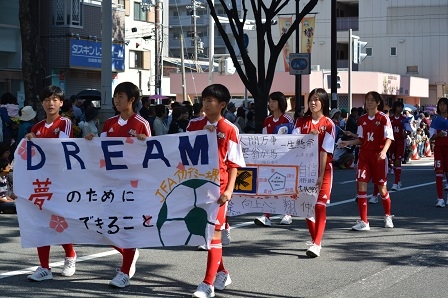 私は、「DREAM 夢のためにできること」という言葉が書いてある旗を持って歩きました。