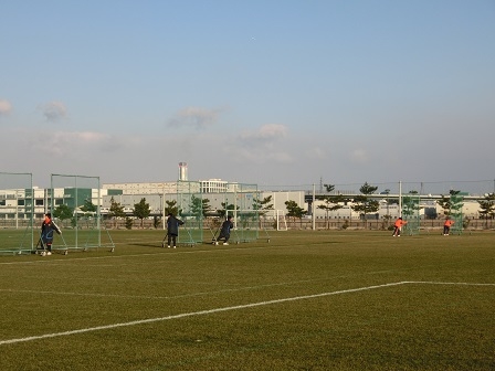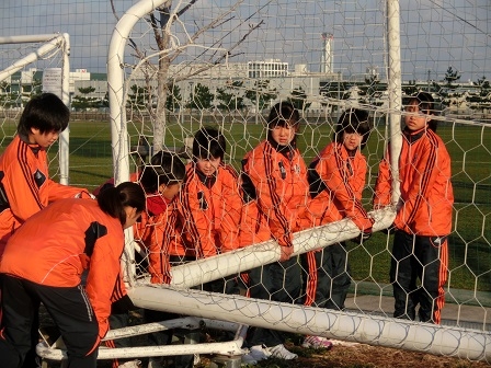 慣れた手つきでゴールや防護ネットを運んでいきます。