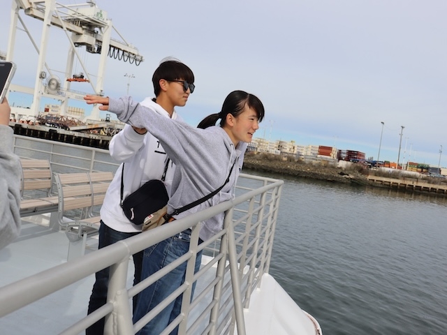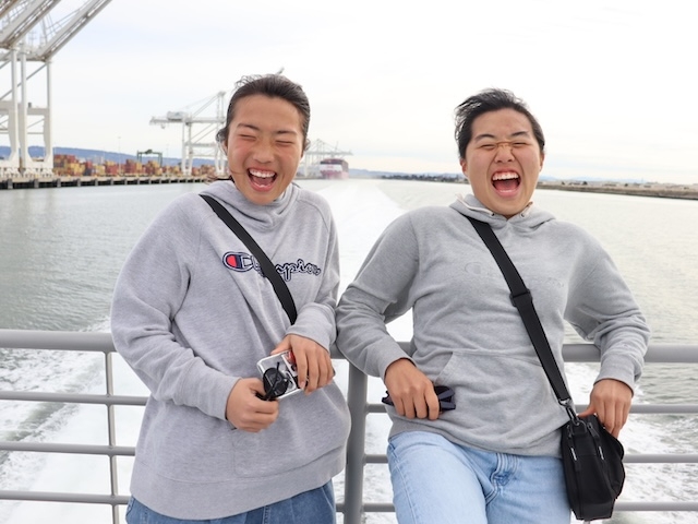 まずはフェリーに乗ってサンフランシスコのダウンタウンに向かいます。甲板に出て海風を感じながらサンフランシスコの景色を満喫しました。初日に車で渡ったベイブリッジの下も通過し、橋の大きさを改めて実感しました。