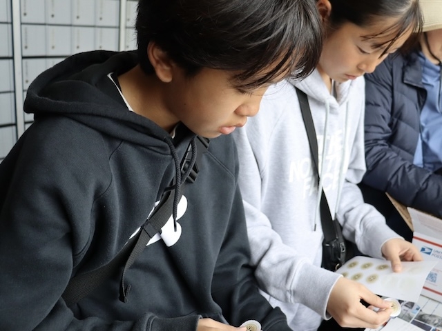 続いて郵便局に立ち寄り、自分たちが書いた絵葉書に切手を貼って投函します。