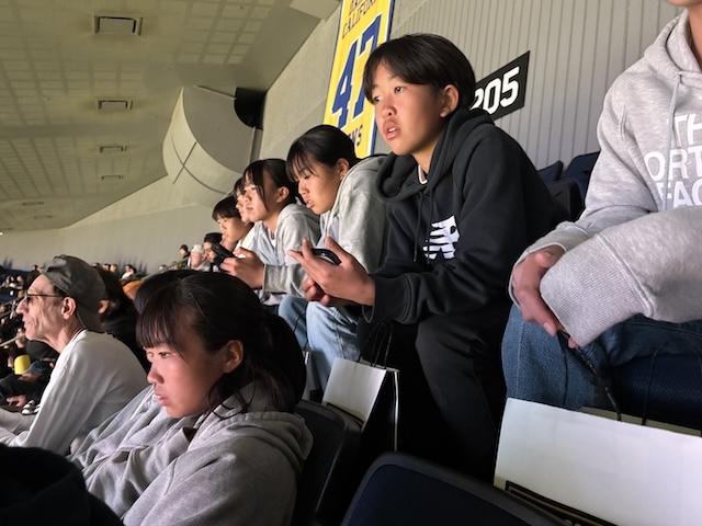 ウォーリアーズはイージーなミスが響き、最終クウォーター残り4分の時点では10点差という苦しい展開でしたが、驚異的なディフェンスで点差を徐々に詰めていきます。そして残り20秒でついに逆転に成功!大きな声で声援を送っていたアカデミー生たちはもちろん、会場全体の盛り上がりも最高潮のまま試合が終了し、ウォリアーズが劇的勝利を収めました。