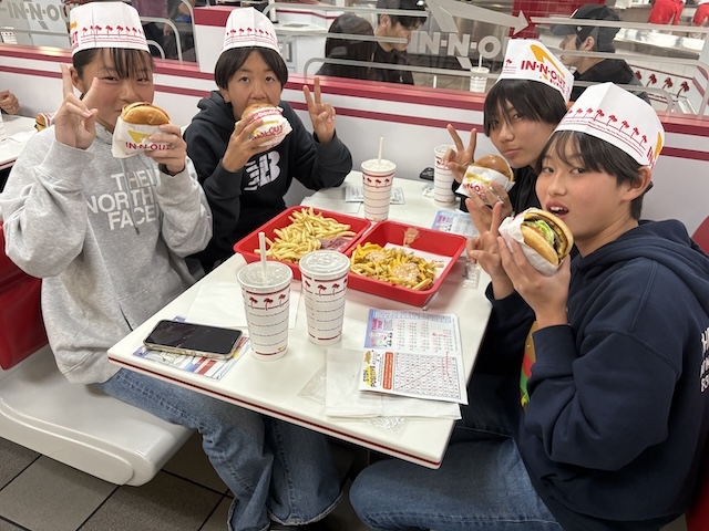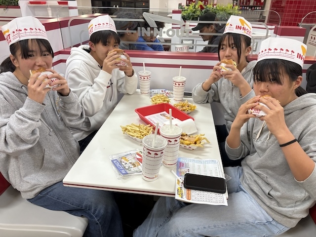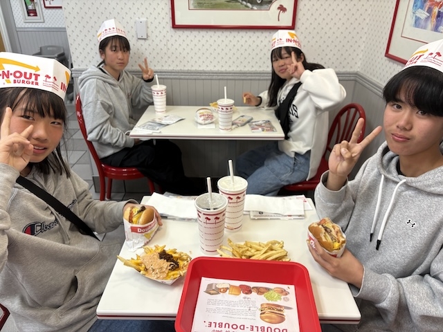 アメリカで大人気のハンバーガーショップ「IN-N-OUT」で遅い夕食をとりました。IN-N-OUTにはすでにホストファミリーと訪れていた選手もいましたが、あまりの美味しさにもう一度来たかったから良かったとのこと。