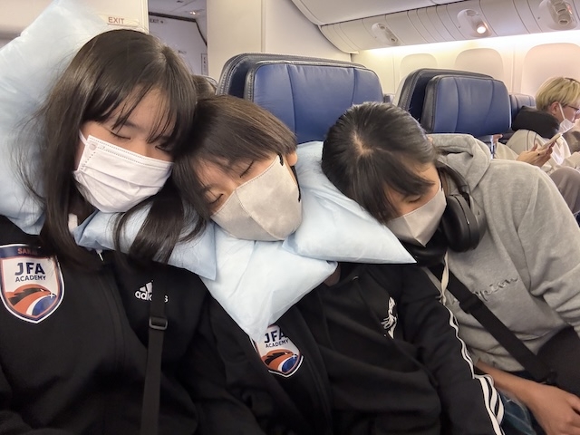 選手たちに影響はなく機内ではぐっすり眠っていました。