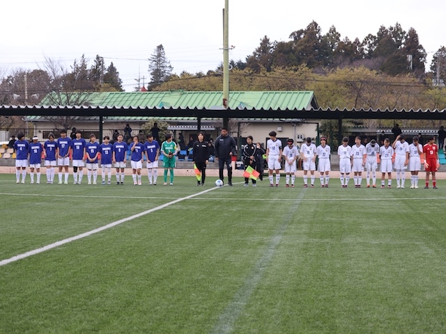 午後からアカデミー福島と対戦しました。昨日の敗戦を引きずることはなく気持ちのこもった熱い戦いをしてくれました。前半の15分までは完全に主導権を握られ防戦一方の展開でしたが、徐々に前線からの守備が効いてきて主導権を握り返しました。後半はさらに攻撃の姿勢を強めて相手ゴール前に迫りました。そしてCKのこぼれから楠本のシュートが決まり先制。その後林が自らが獲得したPKを決めて2-0。さらに廣瀬がGKとの1対1を冷静に流し込み3-0。守備陣もGKを中心に集中力を切らさず最後までゴールを守り抜き3-0で試合を終えることができました。