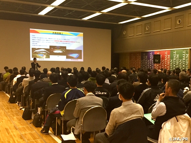 11月30日(水)、東京都のJFAハウスにて、9月にコロンビアで開催された2016 FIFAフットサルワールドカップの大会分析をテーマにしたリフレッシュ研修会を開催し、約200名のサッカー・フットサル指導者が参加しました。