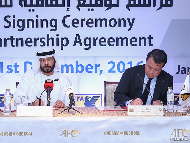 Japan Football Association (JFA) has extended a Memorandum of Understanding (MoU) with UAE Football Association (UAE FA) today, 1 December, in Abu Dhabi. This renewal agreement in between the football governing bodies reconfirms the mutual relationship and continuous cooperation for a further development of football in both UAE and Japan.