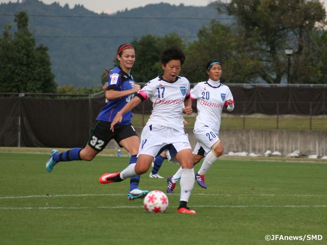 In the beginning of the match, Konomiya Speranza took the initiative by utilising swift ball moments with minimal ball touches and constructing offence by using vertical passes in the attacking third of the pitch. In the 10th minute, Sarah GREGORIUS received the through pass and dribbled past the opponents’ goalkeeper, but her attempt from tight angle was denied by the goalpost.