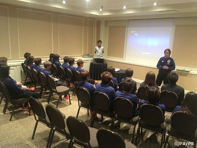 The team went through the video tapes of their match against Brazil before supper, as they reorganised what they’ve worked on thus far and what they must improve following the two matches. After mapping out where the team stands at the moment, Coach TAKAKURA Asako gave a pep-talk to her players ahead of their match against Australia, “Our strengths is in our ability to work hard together. However, you must not be hesitant to showcase your individual ability. I want you to look into your heart and improve one step at a time.”