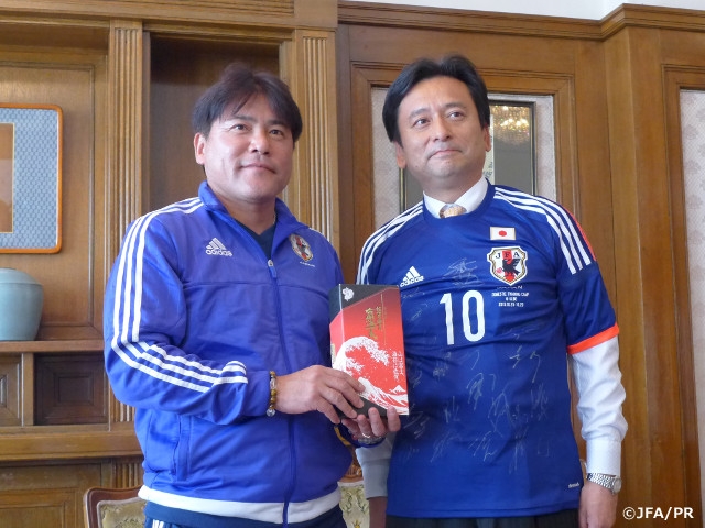 In the afternoon, the coach Teguramori paid a courtesy visit to YAMAGUCHI Yoshinori, the governor of Saga.