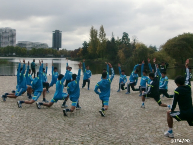 "00JAPAN", who had arrived in the outskirts of Paris, started their short training session in the morning and mainly did some stretching and running. As most of them have experienced the recent AFC U-16 Championship 2016 Qualifiers together, they communicated with each other very actively, focusing well on training despite the long flight and the time difference.
