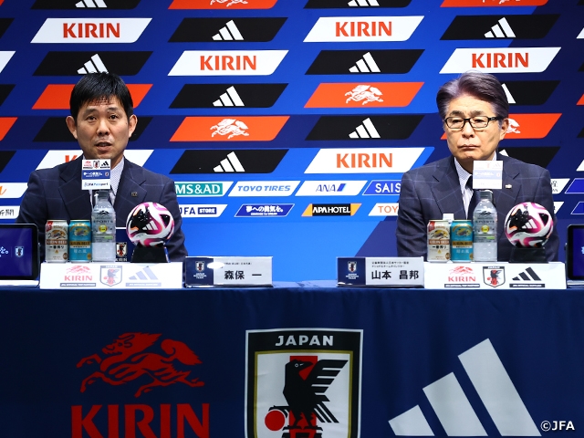 On Thursday 7 November, SAMURAI BLUE (Japan National Team) head coach MORIYASU Hajime announced his squad for the upcoming away matches against Indonesia (11/15@Jakarta) and China PR (11/19@Xiamen) in the FIFA World Cup 26™ AFC Asian Qualifiers. The coach shared his aspiration to “give our all to make forward progress.”