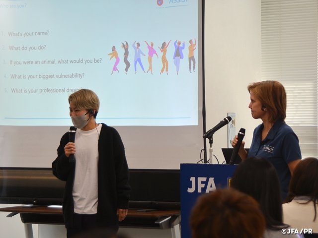 Through the programme, the participants were asked to think about their own careers in five years' time and discuss what they should do to achieve them, the external and internal barriers for women to build their own careers and how to overcome them, and the barriers for girls and women to continue playing football in Japan. During the lecture, the participants were told to “be aware of the barriers that surround you. Don't ever accept them as the norm and be honest with yourself (about what you want to do), otherwise you won't be able to break through these barriers.” They were also told that in order to break down these barriers and to achieve personal growth, they need to speak up, make more friends, and get out of their comfort zone. Participants commented that they realised that what they had thought of as external barriers might actually been internal barriers and that they would like to take action from now on.