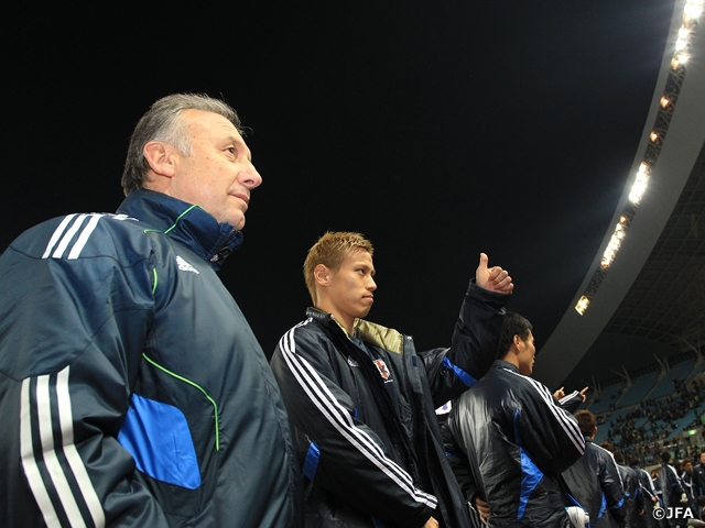 Players belonging to clubs overseas returned to Japan for this match, and we made the training sessions open to the public, while holding fundraisers prior to each of the sessions. I remember that a long line was formed each time we held the fundraiser, and players took turns to greet the fans. I also remember that the team captain, HASEBE Makoto, was there beside me. I was strongly impressed by the smiles of the people there. Considering the players we gathered for this match, I thought the match should be taken seriously. That is why I made our players try out the 3-4-3 formation. With KAWASHIMA Eiji starting in goal, YOSHIDA Maya, KONNO Yasuyuki, and INOHA Masahiko formed the three-man defence line. UCHIDA Atsuto and NAGATOMO Yuto were placed in the flanks as wing-backs, while Hasebe and ENDO Yasuhito served as the defensive midfielders. HONDA Keisuke, MAEDA Ryoichi, and OKAZAKI Shinji were the three attackers upfront. A total of three goals were scored in that match, but I don’t really remember the goals we scored. Partly because I was concentrating on how to approach the opponents, but above all, it was because I vividly remember the goal scored by MIURA Kazuyoshi, more than anything else. I'm a person who doesn't like to get scored on, even in a practice game. But in that moment, for the first time in my life, I was happy to see our opponent score a goal against us. The fact that Miura, who is an iconic figure in the history of Japanese football, has scored a goal in that match, created a priceless moment. However, since I am the type of coach who always corrects mistakes, I called MORIWAKI Ryota, who was supposed to mark Kazu, and warned him to “focus.” It was an advise I gave to him not for that particular match, but with an eye on his future. It was also a pleasure to see Dragan STOJKOVIC as the opposing coach. I have always admired him ever since he was a player. I still enjoy watching videos of his goal scenes. His best goal is definitely the shot he fired from his own bench into the goal of Yokohama F. Marinos with leather shoes when he was the coach of Nagoya Grampus.