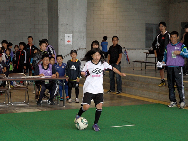FIFAワールドカップ日韓大会の開催地であることの誇りを伝承し、誰もがサッカーに親しめる機会を提供することを目的として、「みやぎ県民サッカーの日」を独自に制定。JFAフットボールデーとして位置づけ県協会として取り組んでいます。雨天により規模縮小となりましたが、0歳児からシニアまで年齢性別問わず、家族連れや、小中学生の子ども達が参加し、多くの笑顔や笑い声が響くイベントとなりました。スタジアムツアーやフェイスペイント、ネイルペイント、〇☓クイズは気軽に参加でき、女性をターゲットにしたブース「乙女のKICKにひとめぼれ(PK対決)」や、「米姫のサッカーリング(フラフープの中で止まるように加減してボールを蹴る)」は、会場が一体となる盛り上りとなりました。