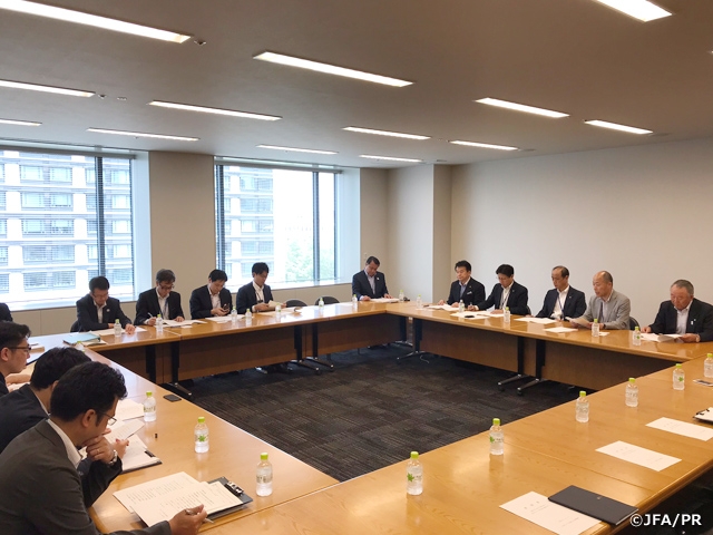要望書は、サッカーグラウンドやスタジアムの整備、女子サッカーや障がい者を含めたグラスルーツサッカーの環境整備、多くの関係者が参加しやすい学校部活動環境の整備などの項目からなるもので、出席した総務省、スポーツ庁、経産省、国交省の各代表者に手渡されました。
