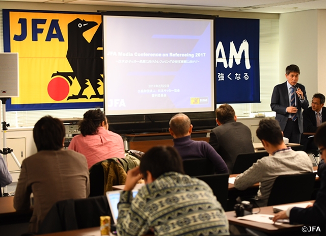 また、毎年、Jリーグ開幕に先立ちメディア関係者を対象に行っている「JFA Media Conference on Refereeing 2017」のレポートも掲載。今回は、映像を用いて今シーズンのスタンダード(判定基準)を解説したほか、審判委員会の新たな取り組みなどを紹介しました。