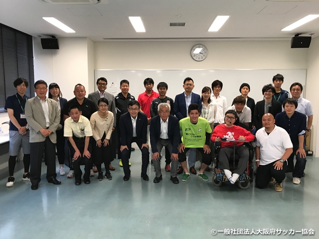 ミーティングにおいて、各団体の現状を聞き、課題も多くある一方、サッカーは様々な障がい者にとって活動の場がある競技だと認識し、これを機に大阪府サッカー協会の機動力や情報力とともに、ネットワークの構築が必要と実感しました。先日国際オリンピック委員会では、「オリンピック参加者の男女比率を半々にする」として男女混合の団体種目を採用しました。世界や日本で男女の壁をなくすべく進んでいくのと同じように、当協会でも障がい者スポーツと健常者スポーツの壁を少しでも減らせるよう、障がい者スポーツを多くの人に知ってもらい、障がい者を支える人たちを増やすために、より一層、普及・啓発に努めていきたいと考えています。