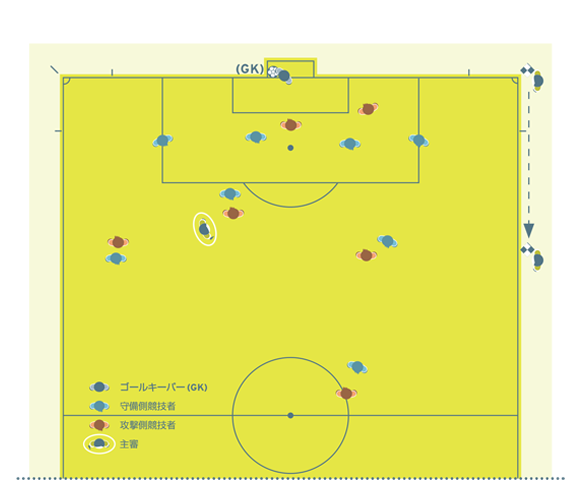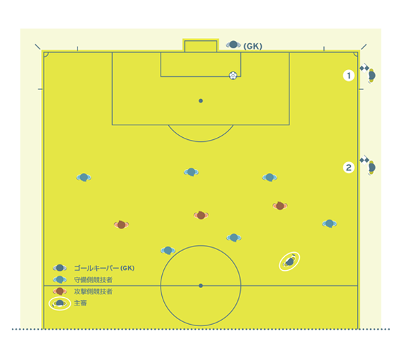 ・副審から近い場合-ゴールキックかコーナーキックかを示す。