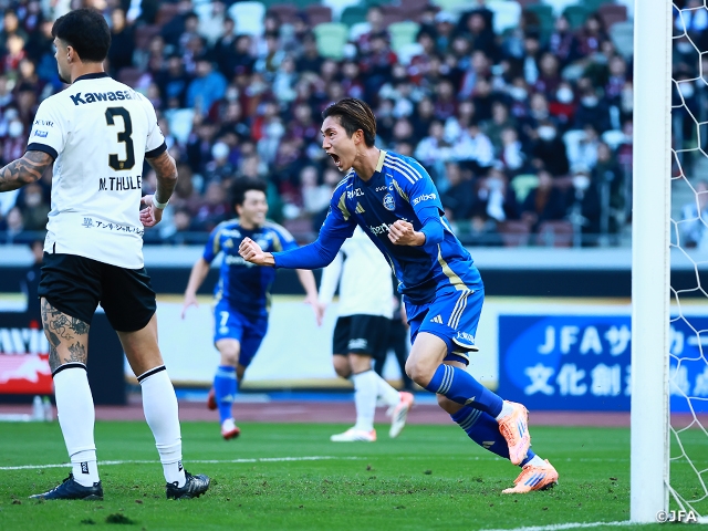 とてもうれしいです。1点目は(クロスに対して)GKの後ろに入るとパンチングされると思ったので、GKの前に入って(ボールに)当てることを意識しました。(自身の)2点目は相馬(勇紀)くんの「パス」という声が聞こえましたが、思い切って振り抜きました。決勝でゴールを決めてチームを優勝させることをずっとイメージしていましたし、今シーズンの自分自身の評価を上げるのは今日しかないと考えていたので、その覚悟を決めて臨んだのが良かったと思います。