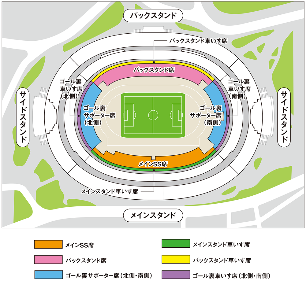 ※メインスタンド車いす席/ゴール裏車いす席の価格はご本人様+介助者1名様の金額となります。