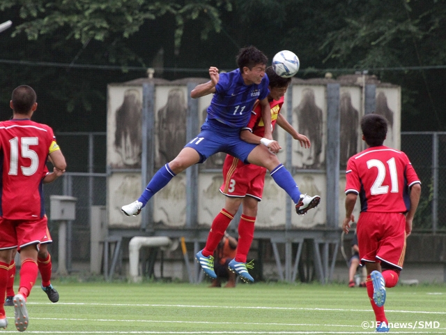 高円宮杯U-18プレミアリーグEAST第9節が7月17日(日)に各地で行われ、第2位の市立船橋高校(千葉)は、1-0で10位の流通経済大学付属柏高校(千葉)を下し、首位に浮上しました。同じ千葉県に拠点を置く両チームは、ともに全国優勝を目指す強豪校。試合は、ライバル対決らしい引き締まった雰囲気の中で行われました。