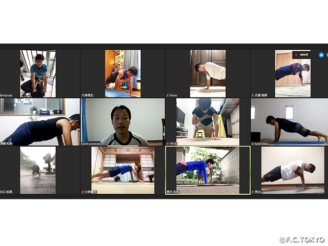 中村 当初は活動自粛期間を1カ月程度と想定していたので、再開時にフィジカル面が著しく落ちることがないよう、フィジカルトレーニングのメニューを用意して「フィジカル維持に向けて各自で取り組んでください」という形で始めました。5月からはウェブ会議システムを導入し、コーチの指導で週1~2回、学年ごとにオンラインで体幹トレーニングをしています。その時にトレーニングや連絡事項を伝えるだけでなく、選手同士で歓談したりして、気持ちが離れないようにもしています。
