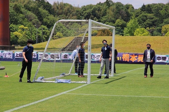 ライン、ゴールの設置状況等のチェックを行うのです。