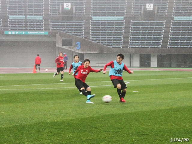 なでしこジャパン 雨の中、スタジアムでトレーニング ~キリンチャレンジカップ2017 ~熊本地震復興支援マッチ がんばるばい熊本~