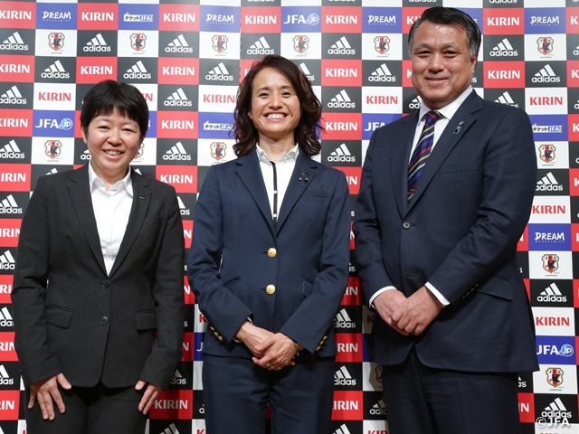 高倉監督はなでしこジャパンでの新たな挑戦に、「後輩が大きな花を咲かせてくれたので、バトンが戻ってきたら受けようと考えていました。光栄です」と話し、「素晴らしい成績を収めてきた選手たちと若手を融合して、新しく強いなでしこジャパンをつくっていきたい。日本人しかできないサッカーを追求したい」と力強く語りました。