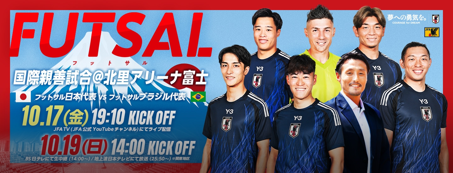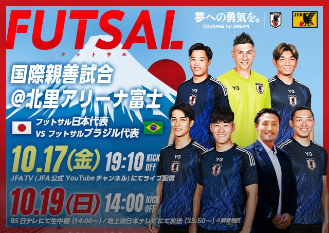 テレビ放送およびJFATVでの配信が決定 フットサル日本代表 国際親善試合 対 フットサルブラジル代表(10.17、10.19 @静岡/北里アリーナ富士)