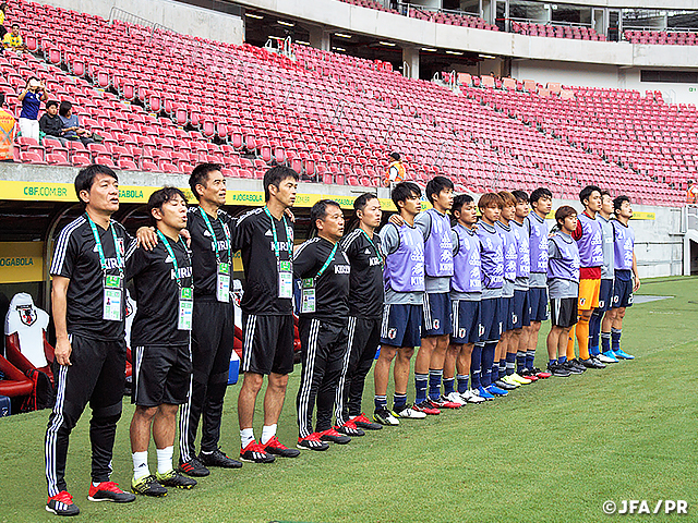 2014年のFIFAワールドカップでも使用したアレナ・ペルナンブーコを舞台に行われたブラジルとのアウェイマッチ。相手の激しいプレスに序盤から圧倒されてPKから先制される最悪のスタートとなるも田中碧の同点ゴールで追い付き、後半には2点を奪う。そこからブラジルの猛反撃を受けて1点差に迫られた上に退場者まで出す苦しい展開となったが、「チームとしてやるべきことを全員がこなした結果」(横内監督)、3-2での逃げ切り勝ち。サッカー王国を相手に大きな自信を掴むこととなった。