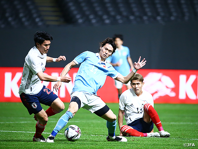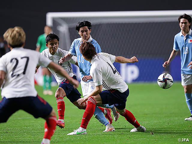 コロナ禍での活動休止から、約1年ぶりの招集となった。森保監督が「1年延期になったことで、新しく伸びてきた選手が本当にたくさんいる」という現状を踏まえ、9名が初招集となる陣容でのトレーニングキャンプを実施した。26日は関東大学選抜との練習試合も実施し、4-0と勝利。本大会への最後のチャンスと位置付けた選手たちが意欲的なプレーを見せた。森保監督は本大会に向けての新戦力探しができたことで、「本当に貴重な機会をつくっていただけたことに感謝している」と総括した。
