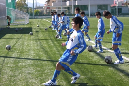 一番最初のメニュー、リフティングではインステップにボールを当て、無回転のボールを蹴る