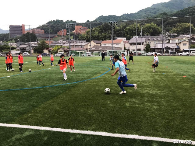 初回のテーマは「攻防」で、その中で「自分で判断してアクションする」「勝負に勝つ」として行いました。最初こそ判断の部分で戸惑いも感じられましたが、徐々に選手が自らの判断で行動するようになり、勝負にもこだわる姿勢が見られました。何より、「彼女たちのサッカーが大好き!」という表情を見せ、プレーをしてくれたことが、大きな成果だと感じています。