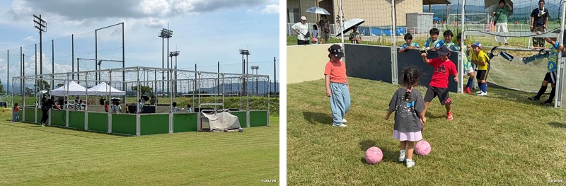 子どもたちが安心して遊ぶことができるキッズピッチ(四方を壁とネットで囲われたケージコート)を活用し、能登半島の公共施設や民有地に一時的なスペースを5か所程度設けます。