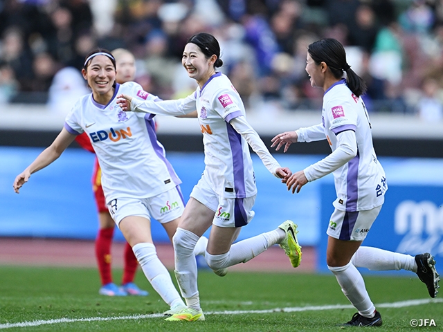 準決勝で伊賀FCくノ一三重(なでしこリーグ1部/三重)に3-1の逆転勝利を飾ったINAC神戸レオネッサ(WEリーグ/兵庫)と、セレッソ大阪ヤンマーレディース(WEリーグ/大阪)に3-2で競り勝ったサンフレッチェ広島レジーナ(WEリーグ/広島)による決勝は、杉野杏紗主審のホイッスルでスタートしました。