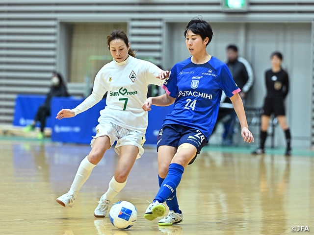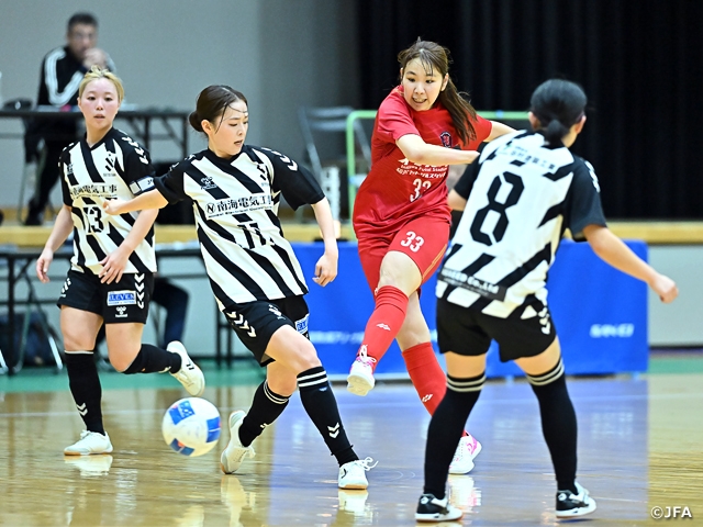 JFA 第22回全日本女子フットサル選手権大会が2月21日(土)に北海道のウインドヒルくしろスーパーアリーナ(湿原の風アリーナ釧路)で開幕し、1回戦の8試合が行われました。異なるカテゴリーのチームによる対戦が醍醐味の本大会において、日本女子フットサルリーグ(女子Fリーグ)のチームが強さを見せています。